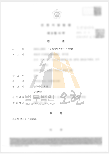 º» ¹ý¹«¹ýÀÎÀº »ç°ÇÀ» ¸é¹ÐÈ÷ ºÐ¼®ÇÑ °á°ú, ½Åü Á¢ÃË »ç½ÇÀº ÀÖÀ¸³ª À̸¦ ¼ºÀûÀÎ Àǵµ°¡ ´ã±ä '°Á¦ÃßÇà'À¸·Î º¸±â¿¡´Â ¹«¸®°¡ ÀÖ´Ù´Â Á¡À» Æ÷ÂøÇÏ¿´½À´Ï´Ù. ÀÌ¿¡ ¾Æµ¿º¹Áö¹ý À§¹Ý ÇøÀÇ¿¡ ´ëÇØ¼´Â À߸øÀ» ÀÎÁ¤ÇÏ°í ¿ÀÇö¸¸ÀÇ ³ëÇϿ찡 ´ã±ä ¾çÇü ÀڷḦ ÅëÇØ ¼±Ã³¸¦ ±¸ÇÏ´Â ÇÑÆí, Ä£Á·°ü°è °Á¦ÃßÇà ÇøÀÇ¿¡ ´ëÇØ¼´Â ÃßÇàÀÇ °íÀǰ¡ ÀüÇô ¾ø¾úÀ½À» ¹ý¸®ÀûÀ¸·Î Ä¡¿ÇÏ°Ô ´ÙÅõ¾ú½À´Ï´Ù. ±× °á°ú ¼º¹üÁË ÇøÀÇ¿¡ ´ëÇØ¼´Â ºÒ±â¼Ò(ÇøÀǾøÀ½) óºÐÀ» À̲ø¾î³ÂÀ¸¸ç, ¾Æµ¿º¹Áö¹ý À§¹Ý¿¡ ´ëÇØ¼µµ 1½É¿¡¼ ¹ú±ÝÇüÀ̶ó´Â °ü´ëÇÑ ÆÇ°áÀ» ¹Þ¾Æ³Â½À´Ï´Ù. ÀÌÈÄ °ËÂûÀÌ ¾çÇü ºÎ´çÀ» ÀÌÀ¯·Î Ç×¼ÒÇÏ¸ç ¾Ð¹ÚÇØ¿ÔÀ¸³ª, ¿ÀÇöÀº ¿ø½É ÆÇ°á ÀÌÈÄ ¾çÇü Á¶°Ç¿¡ º¯È°¡ ¾øÀ½À» ³í¸®ÀûÀ¸·Î ÇÇ·ÂÇÏ¸ç °Ë»çÀÇ Ç×¼Ò¸¦ ±â°¢½ÃÄÑ ÀÇ·ÚÀÎÀÇ ¼ÒÁßÇÑ ÀÏ»óÀ» ÃÖÁ¾ÀûÀ¸·Î ¼öÈ£ÇØ³Â½À´Ï´Ù.